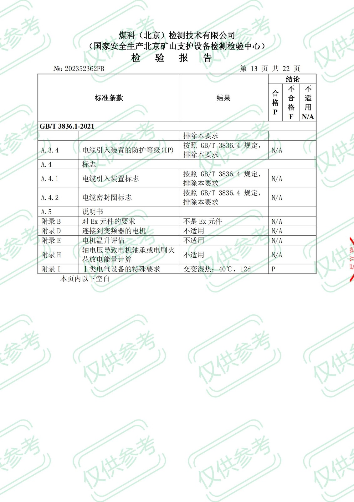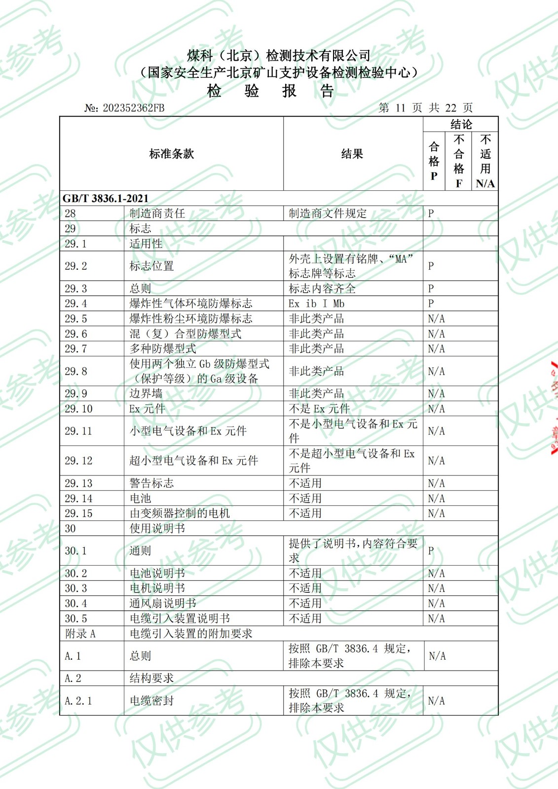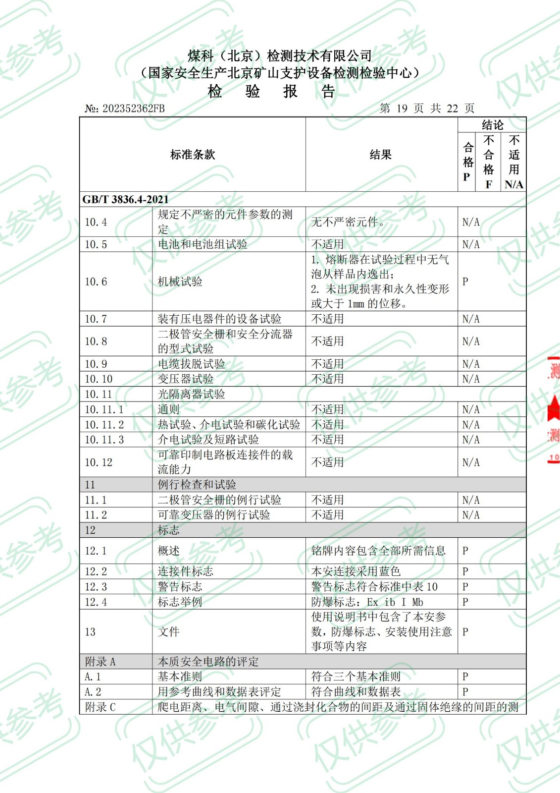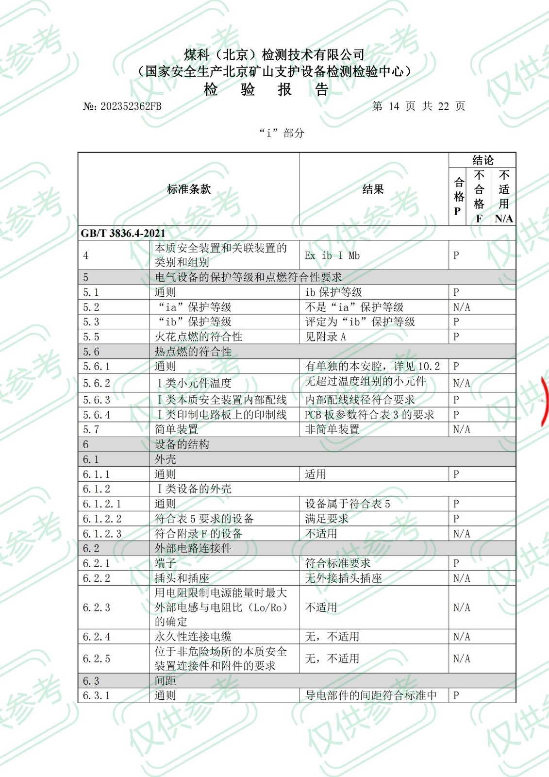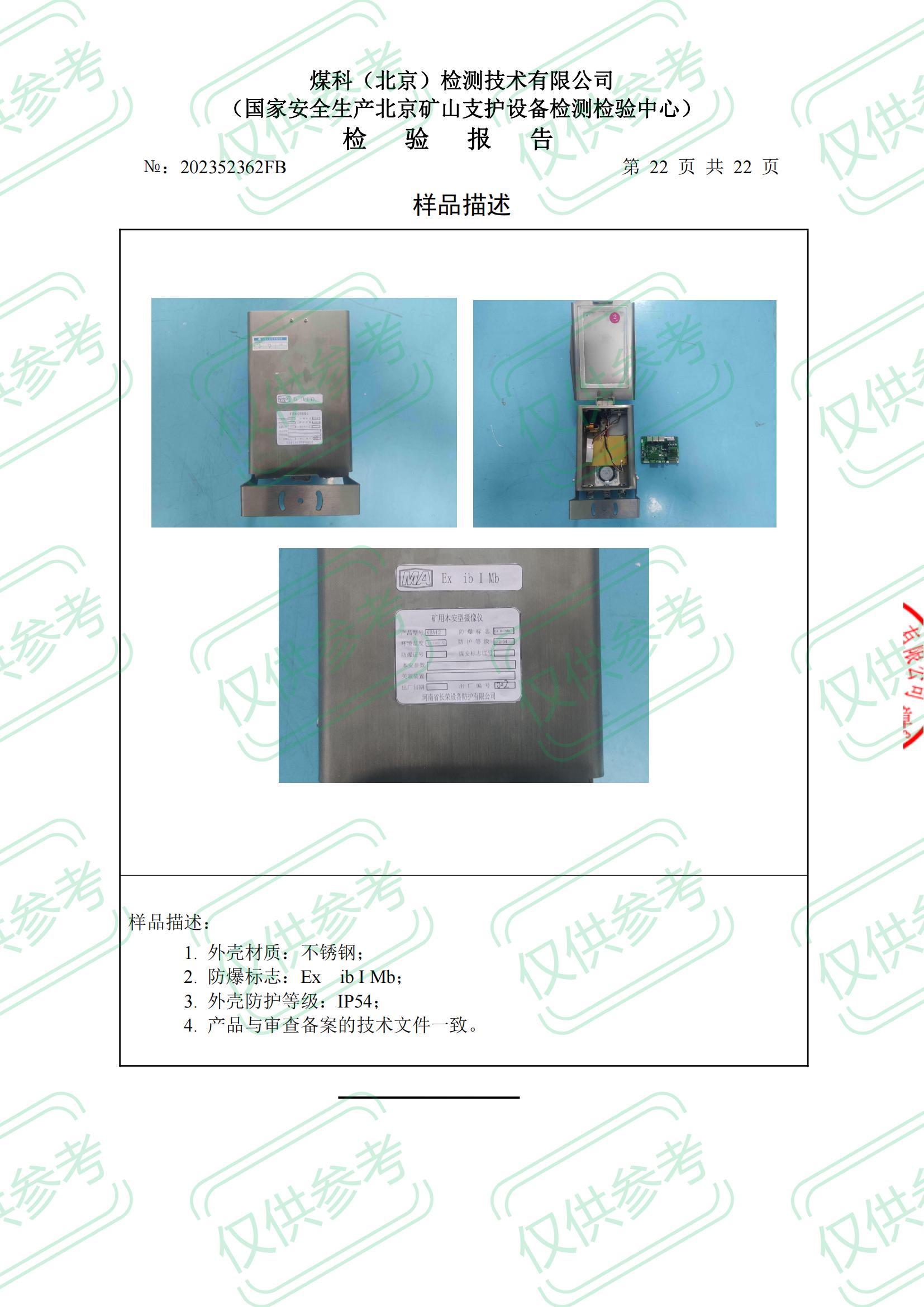 礦用本安型攝像儀檢 驗 報 告ExibIMb