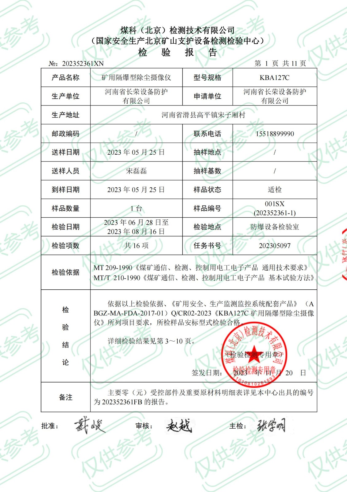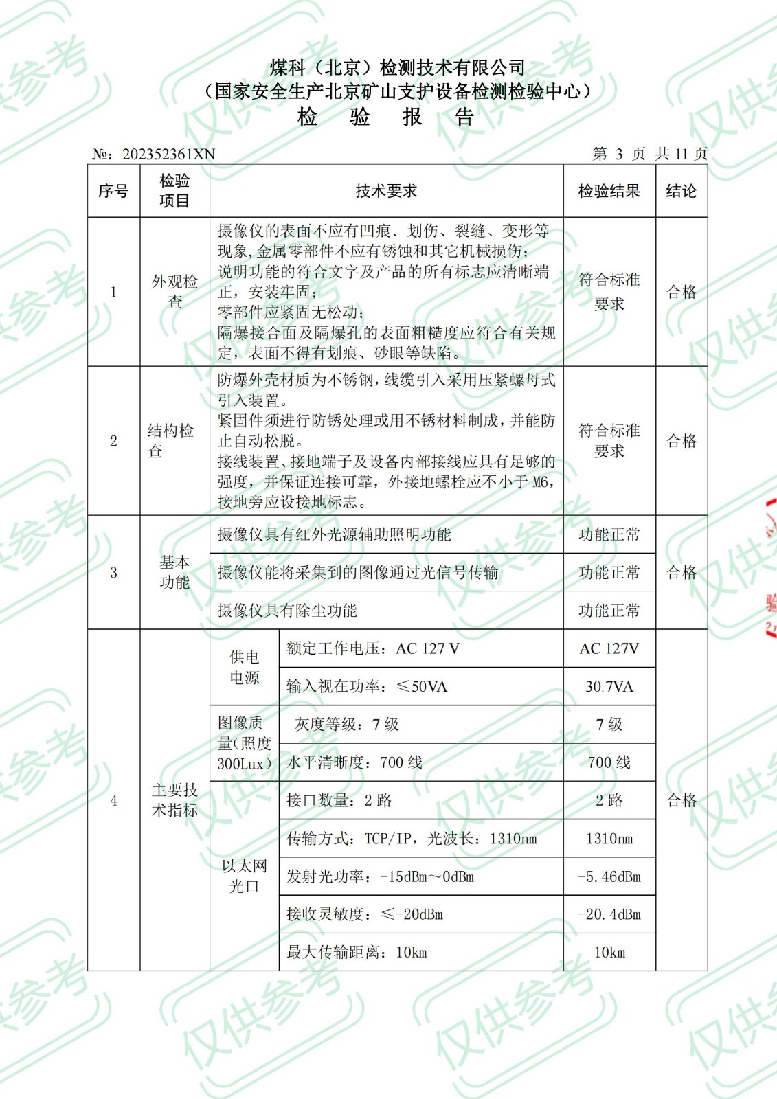 礦用本安型攝像儀檢 驗 報 告KBA12