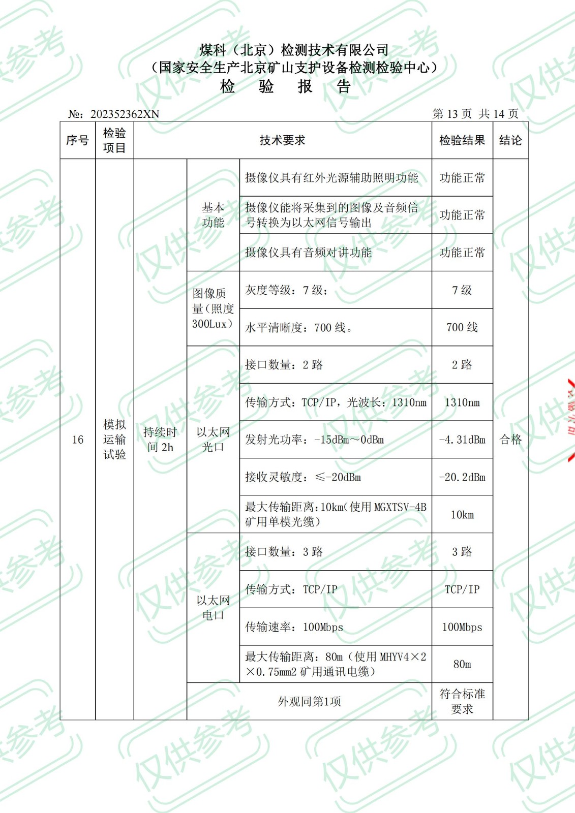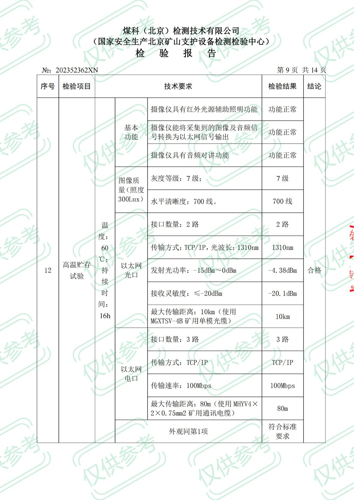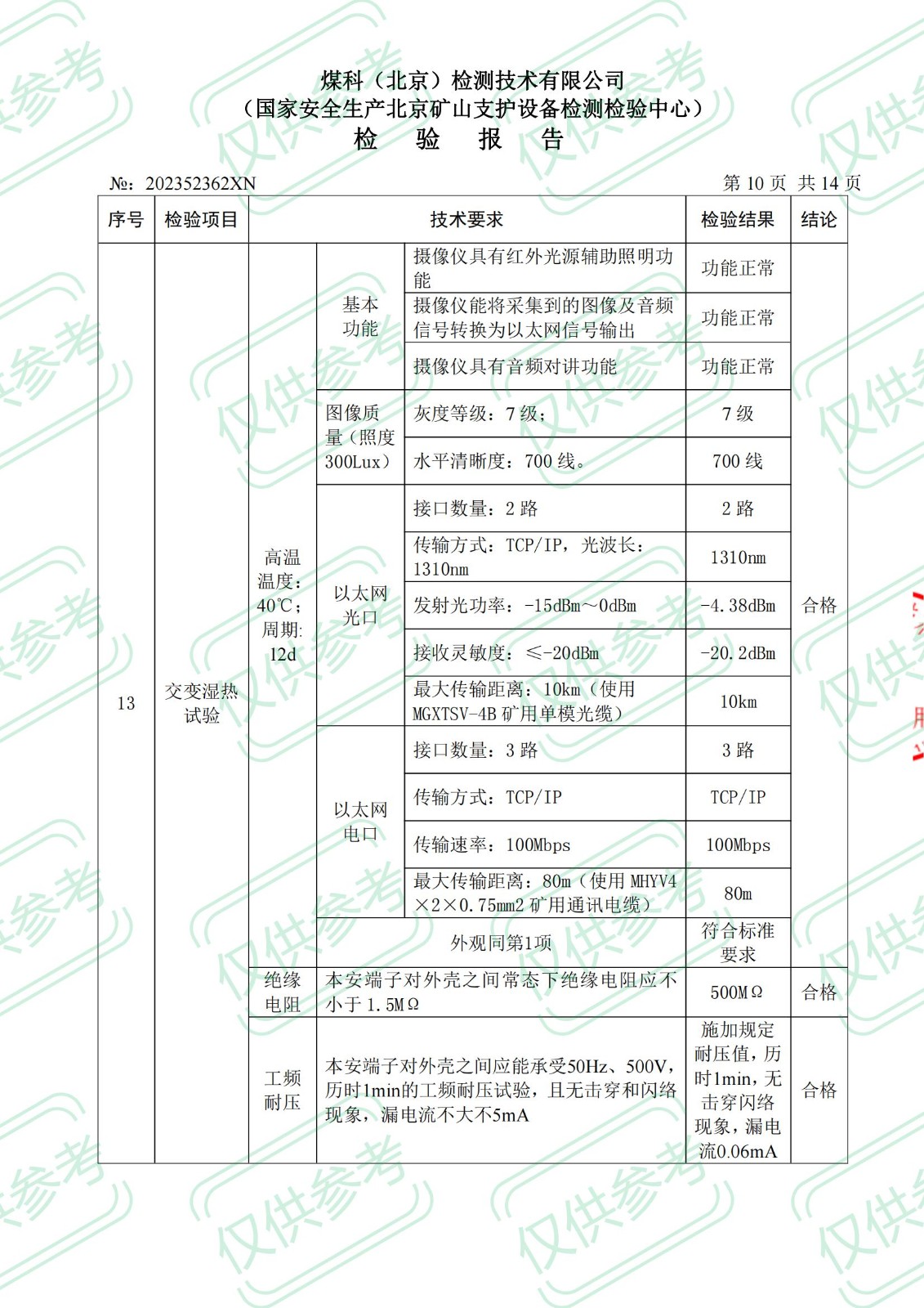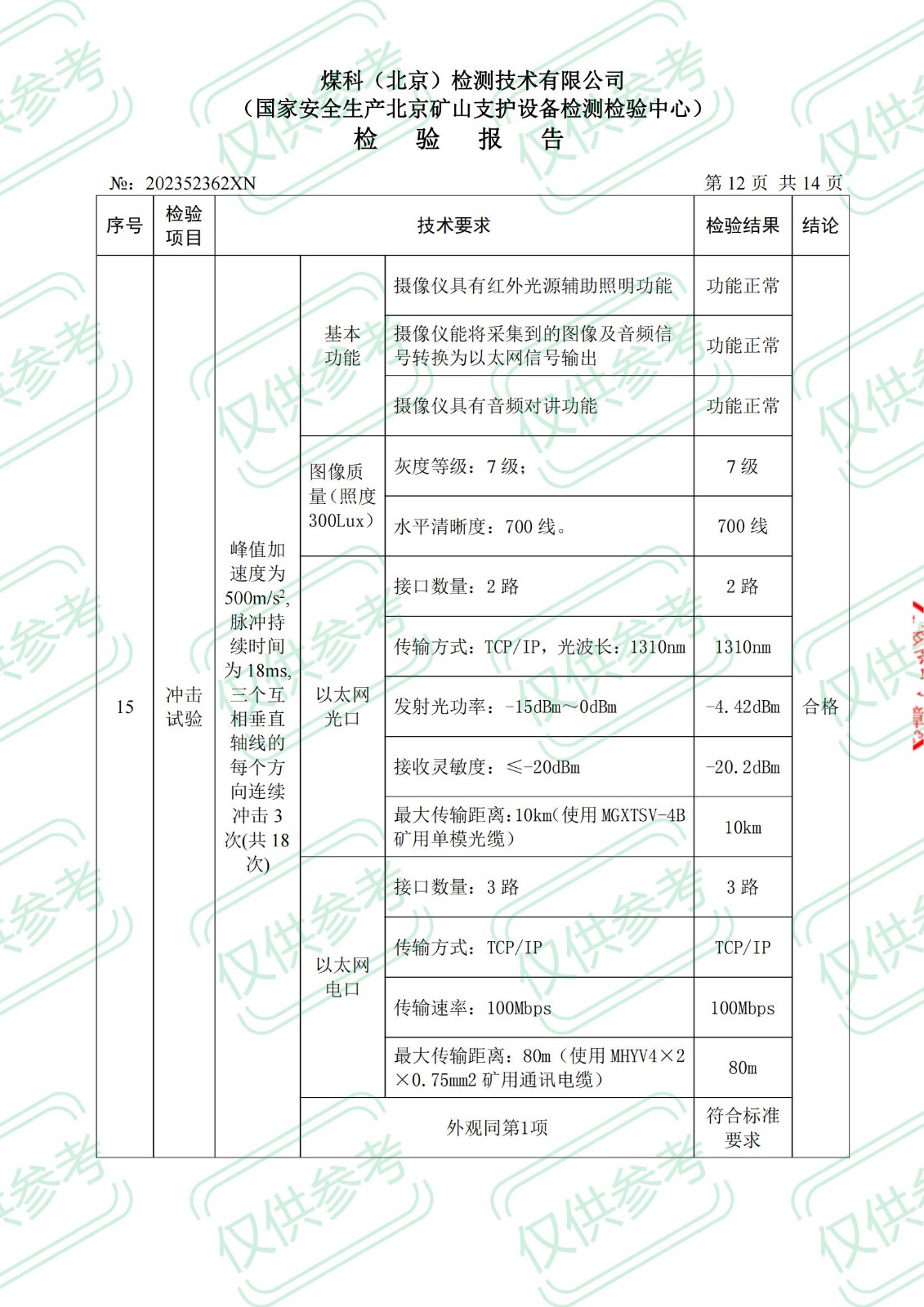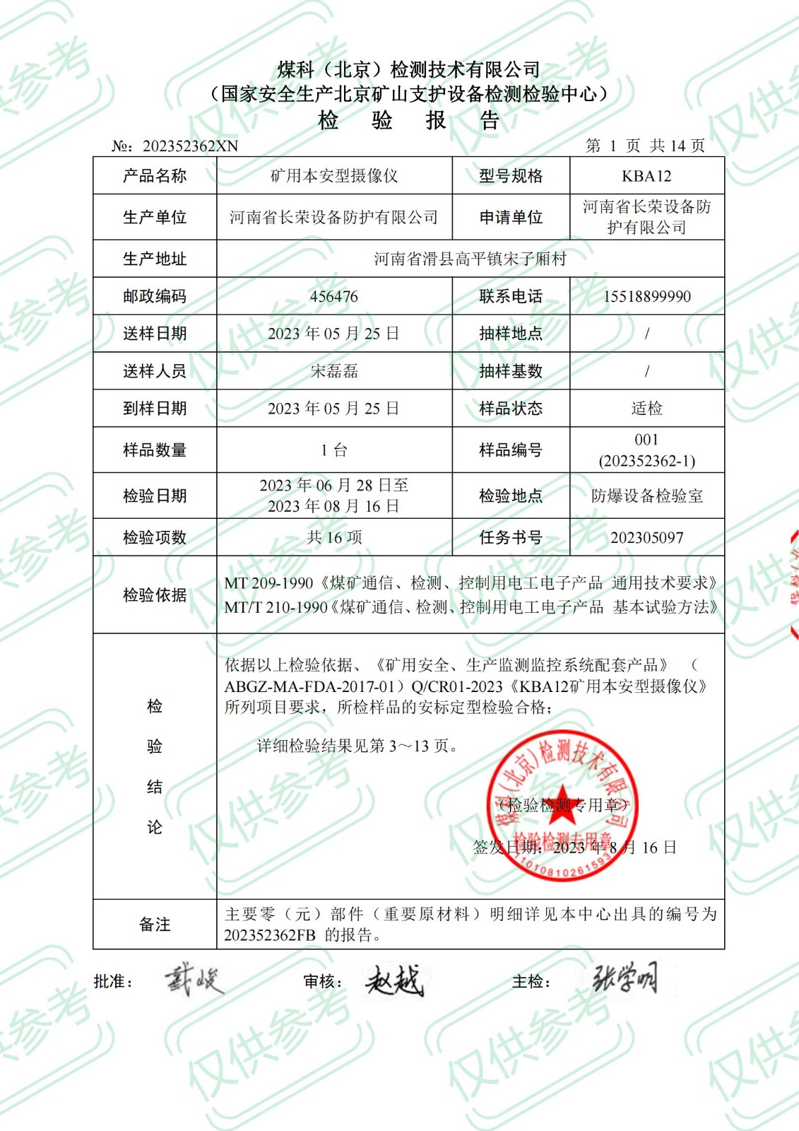 礦用本安型攝像儀檢 驗 報 告KBA12
